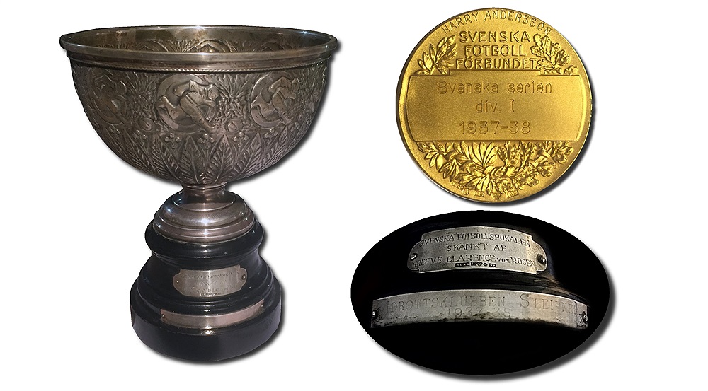 IK Sleipners miniatyr av Svenska Fotbollspokalen skänkt av Grefve von Rosen samt ”Kuba-Harrys" guldmedalj.