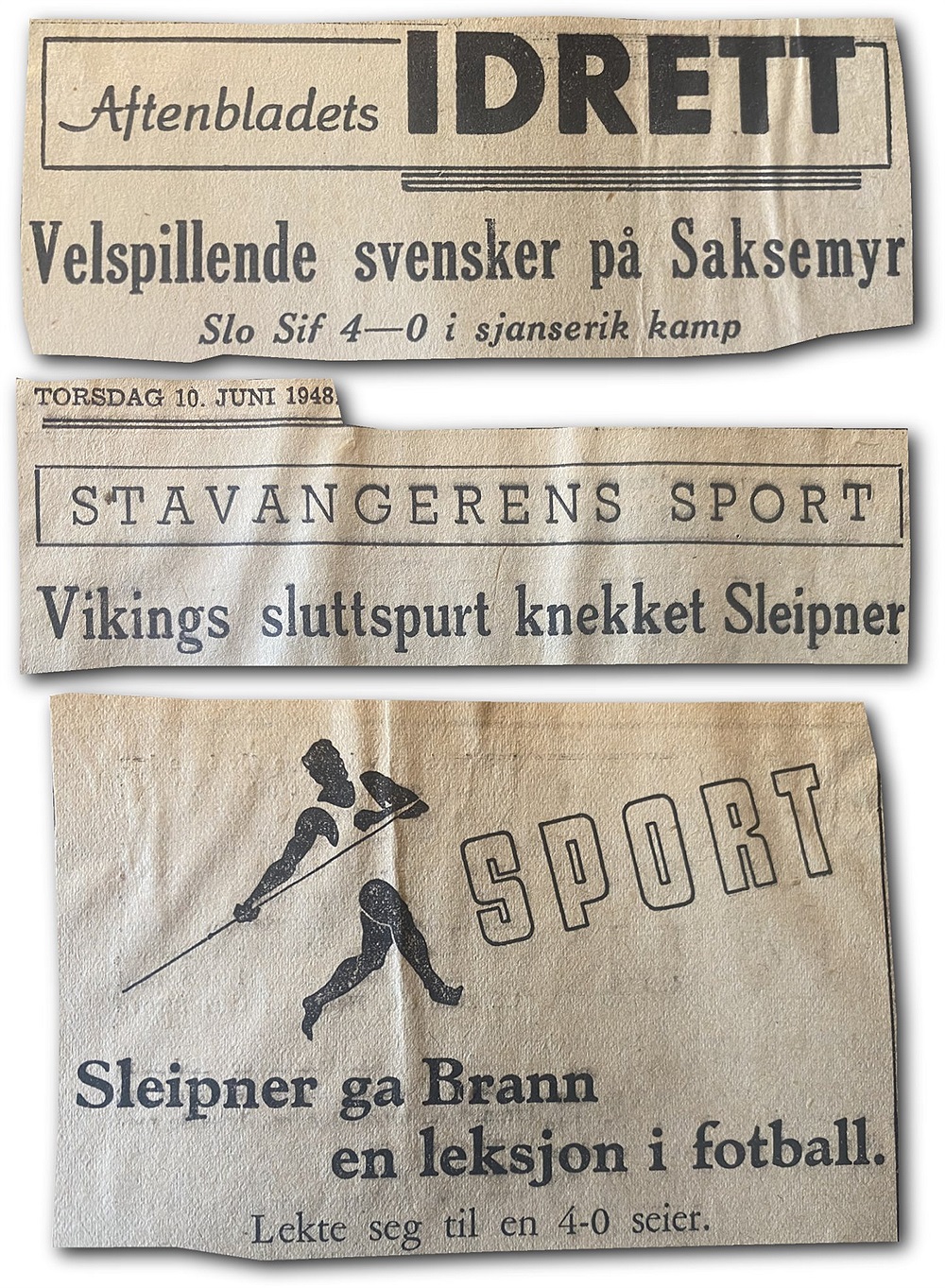 KB Köpenhamn (2-0) Målskyttar Sleipner: Tore Keller, Vigor "Kuta" Lindberg